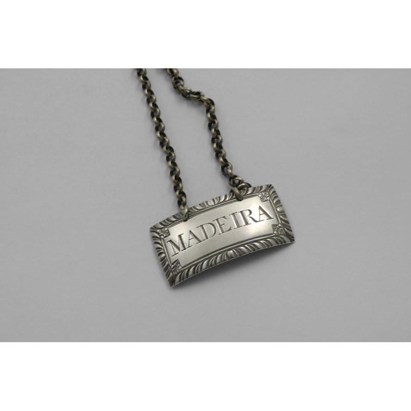with a gadrooned border, the title area with a chased stiff leaf in each corner, incised "MADEIRA", by Thomas Hyde, London c.1770, maker's mark & lion passant only; 1.85" (4.7 cms) long; 0.45 oz
