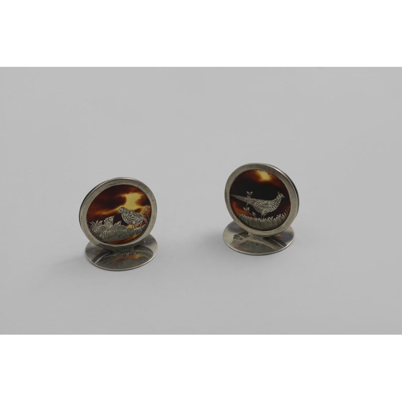 with inlaid tortoiseshell clips and circular bases, maker's mark overstruck and partially unclear, Birmingham 1913; 1.35" (3.3 cms) high (2)