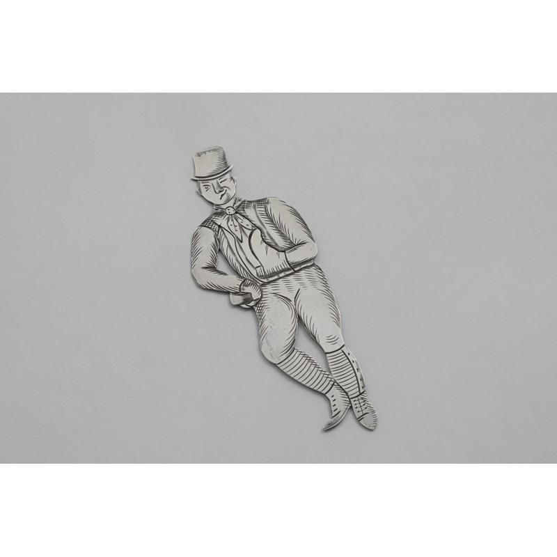 cut out and engraved to resemble the figure of the Dicken's character "Sam Weller" from The Pickwick Papers, maker's mark of J.F. Fradley, New York 1901-1910; 4.25" (10.7 cms) high; 0.5 oz