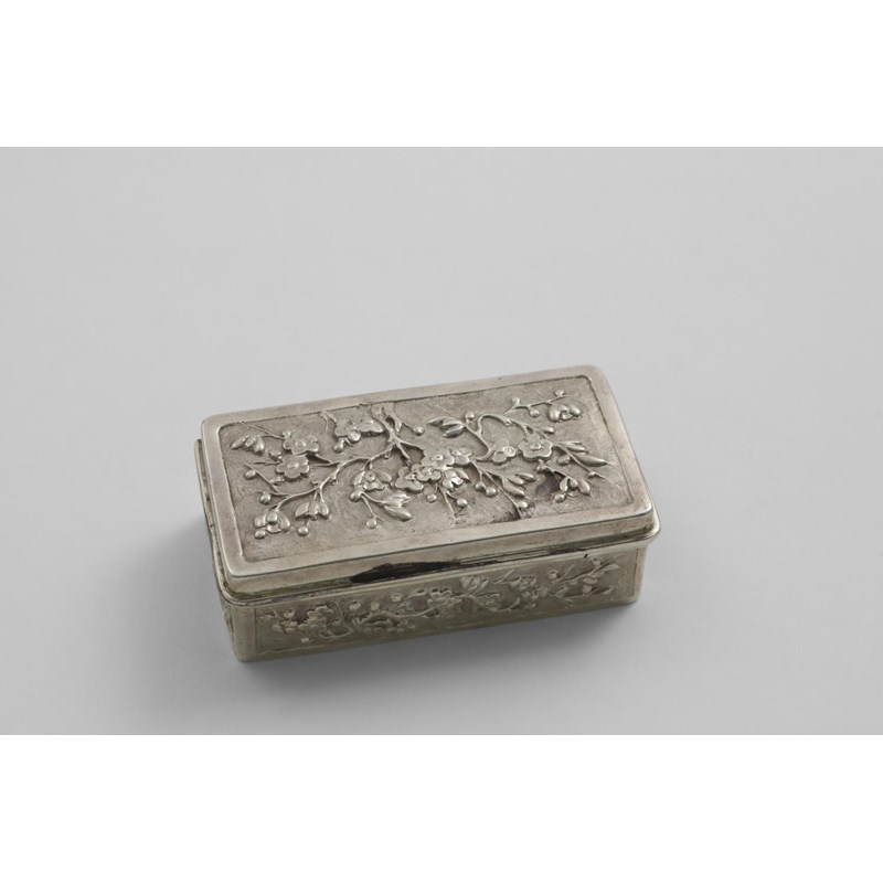 decorated in relief with prunus blossom against a matt ground, by Wang Hing & co., c.1900; 3.2" (8.2 cms) long; 2.25 oz