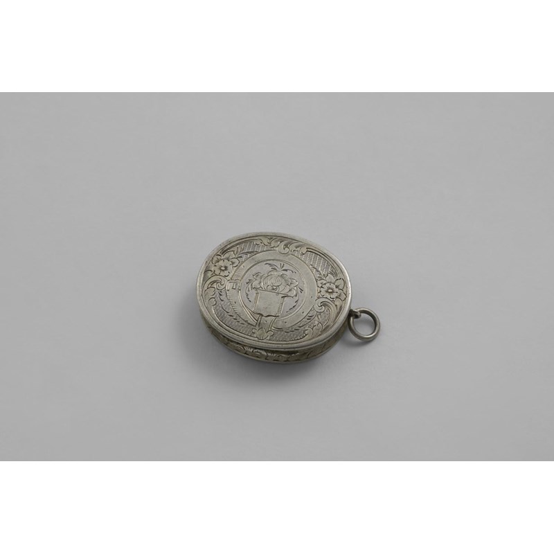 A VICTORIAN ENGRAVED OVAL VINAIGRETTE vacant cartouche, gilt interior, by Aston and Son, Birmingham 1858; 1.55" (4 cms) long; 0.65 oz