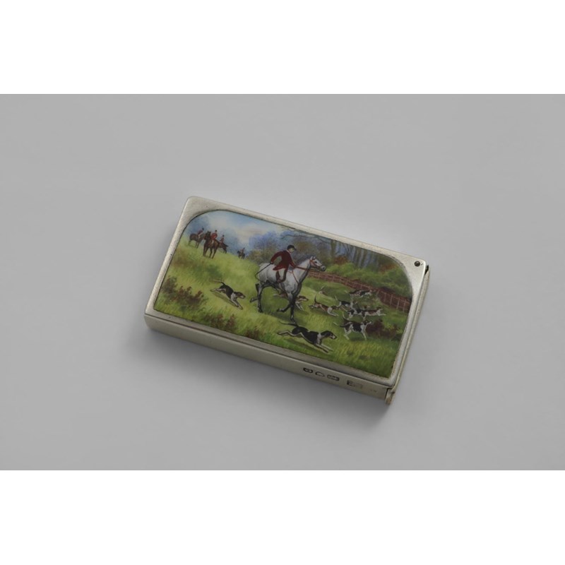 decorated on the front with a foxhunting scene, the reverse inscribed "Stolen from Alfred E. Hind 1901", by Sampson Mordan & Co., London 1900; 2.3" (5.8 cms) long; 1.45 oz