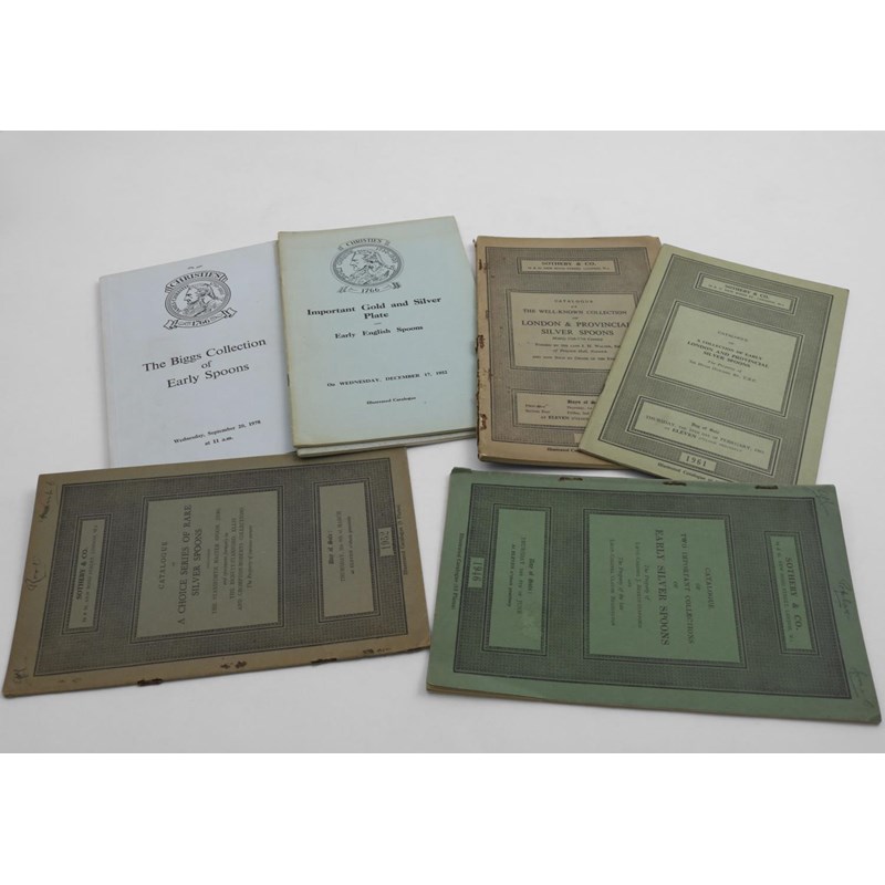 Sotheby & Co.: The Bennett-Stanford Collection 6th June 1946, Dawson Collection 16th Feb 1961; A Choice Series of Rare Spoons 6th march 1952 & the Walter Collection 1st and 2nd July 1954. Christie's: rare York silver and Early English Spoons April 22nd 1953, Important Gold & Silver and Early English Spoons December 17th 1952 and the Biggs Collection September 20th 1978 (7)