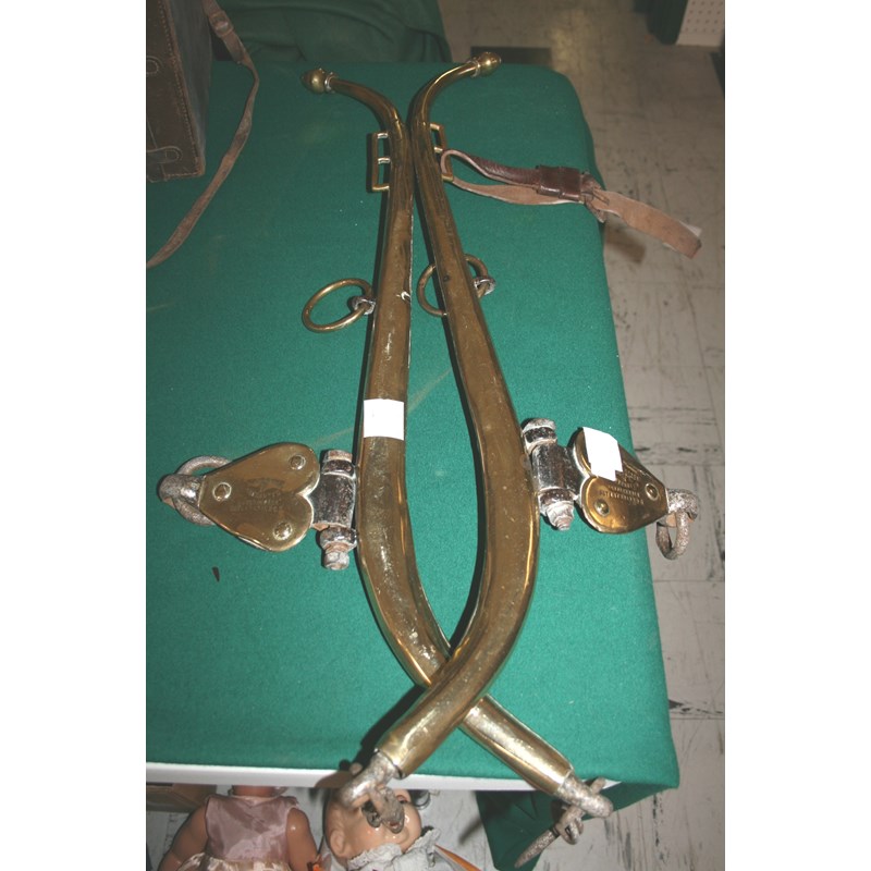 PAIR OF ANTIQUE BRASS SHIRE HORSE HAMES made in solid brass and titled The Unbreakable, and with a patent number.