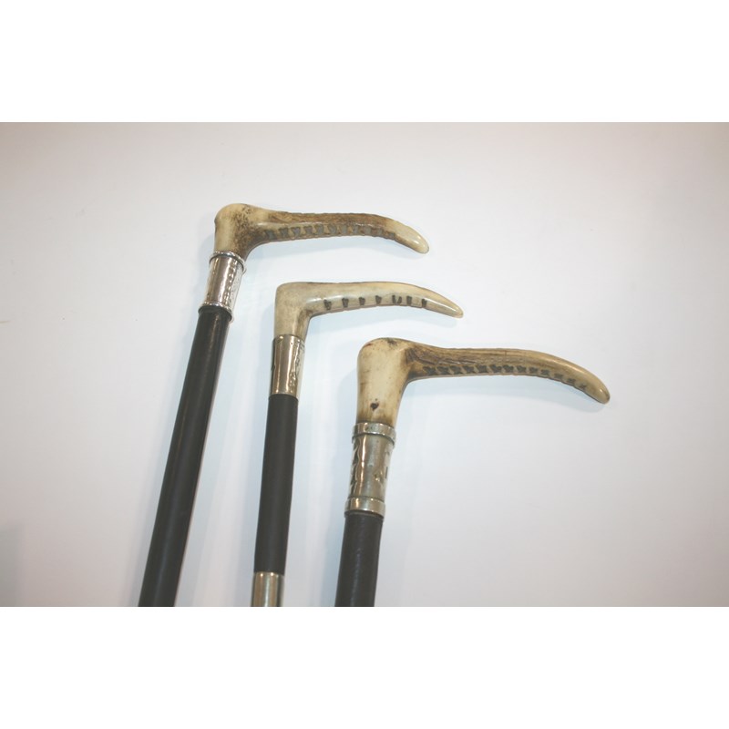 RIDING CROPS - SWAINE including two riding crops by Swaine, and one by Whippy Saddler, London. All with silver plated collars. (3)