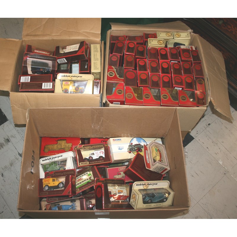 a large collection of boxed models including Cars, Lorries, Buses etc. Including Y2 Supercharged Bentley, Y15 Preston Type Tram, Y27 Foden Steam Wagon, Y5 Leyland Titan, and a wide variety of other boxed models. Also with some Days Gone boxed models, Corgi Watneys Scammel, unboxed models etc.