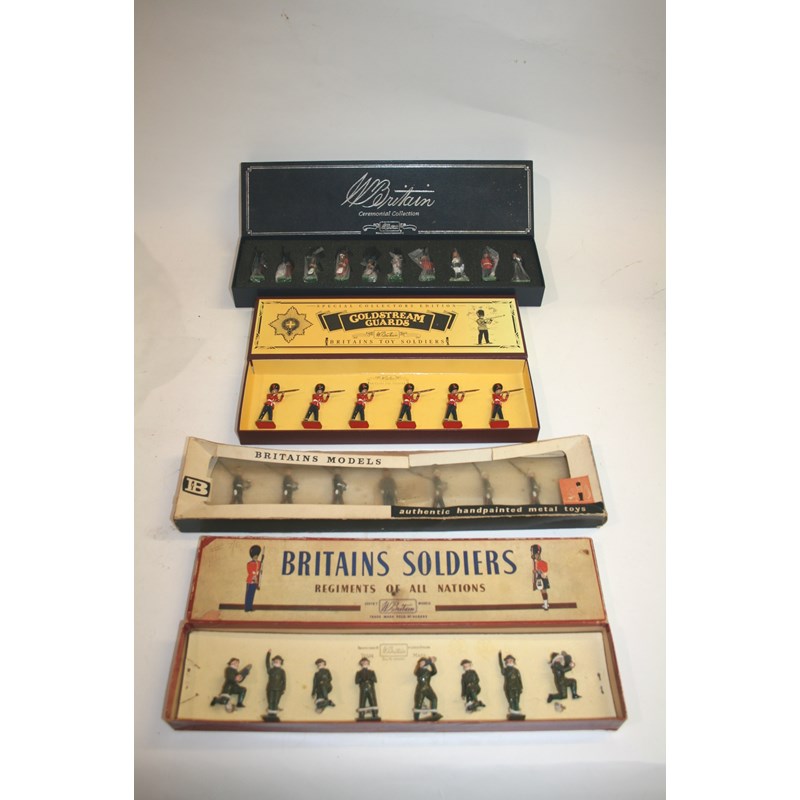 4 boxed sets including, 1730 Royal Artillery, 9140 Royal Marines Marching, 8800 Coldstream Guards, and 00093 All the Queens Men. (4)