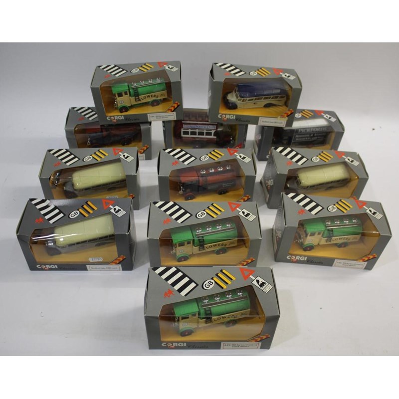 CORGI CLASSICS - LORRIES & BUSES 17 boxed lorries and buses, including C945/2 AEC, C945/1 AEC, 888 Thornycroft Bus, C953/1 Bedford, C949/4 Bedford, C945/2 AEC, C949/4 Bedford etc. (16)