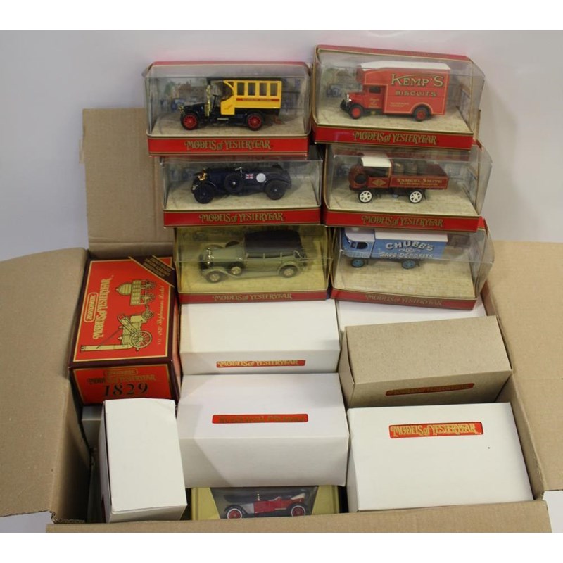 1 box with approx 64 boxed models including Y12 1829 Stephensons Rocket, 1931 AEC Trolleybus Diddler, 1905 Fowler Showmans Engine, Y44 Renault Bus, Y31 Morris Courier, Y40 Mercedes Benz, Y37 Garrett Steam Wagon, Y2 Bentley, Y32 Yorkshire Wagon etc.