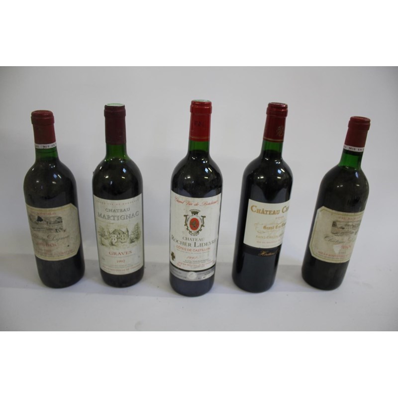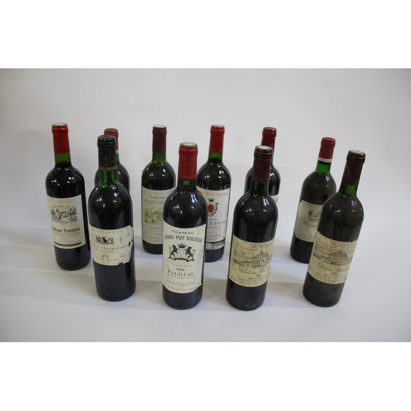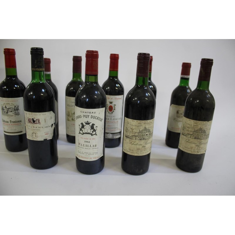 10 various bottles of wine including Chateau Martignac Graves 1992, Chateau Dignac 1985 (2), Chateau Frontenac 2011, Chateau Richer 1997, Chateau La Tour Haut Medoc 1983, Chateau Chauvin 2006, Grand Puy Ducasse 1984, Chateau Barreyres 1986 (2). (10)