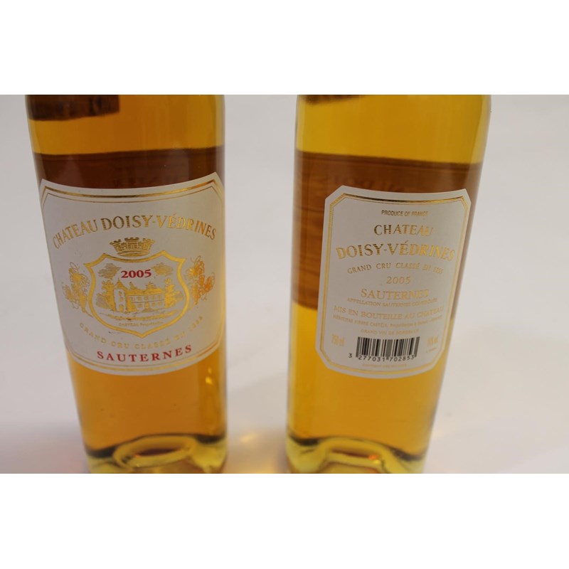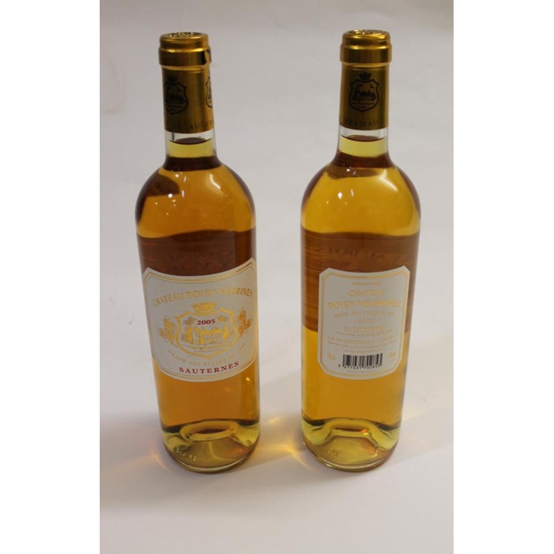 WINE - CHATEAU DOISY-VEDRINES SAUTERNES Grand Cru Classe en 1855, two bottles with differing labels. With it's original box. (2)