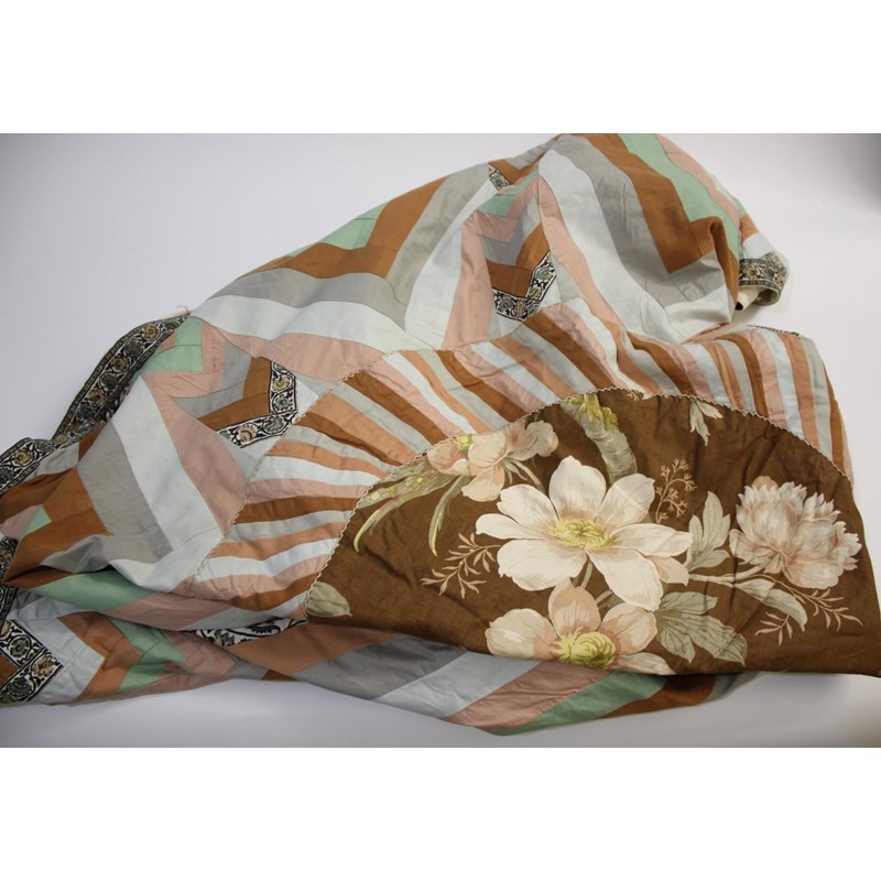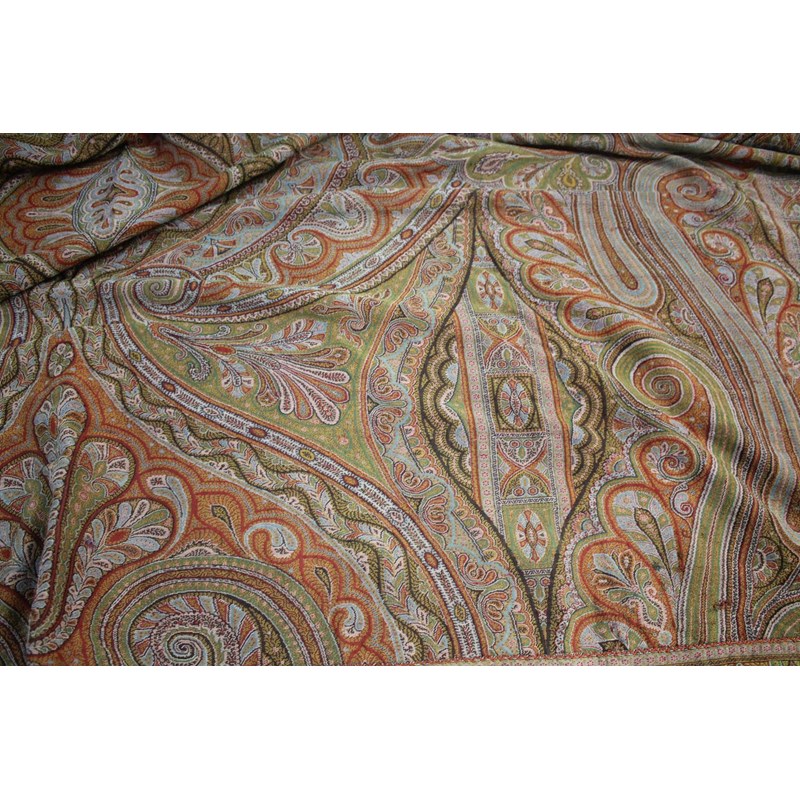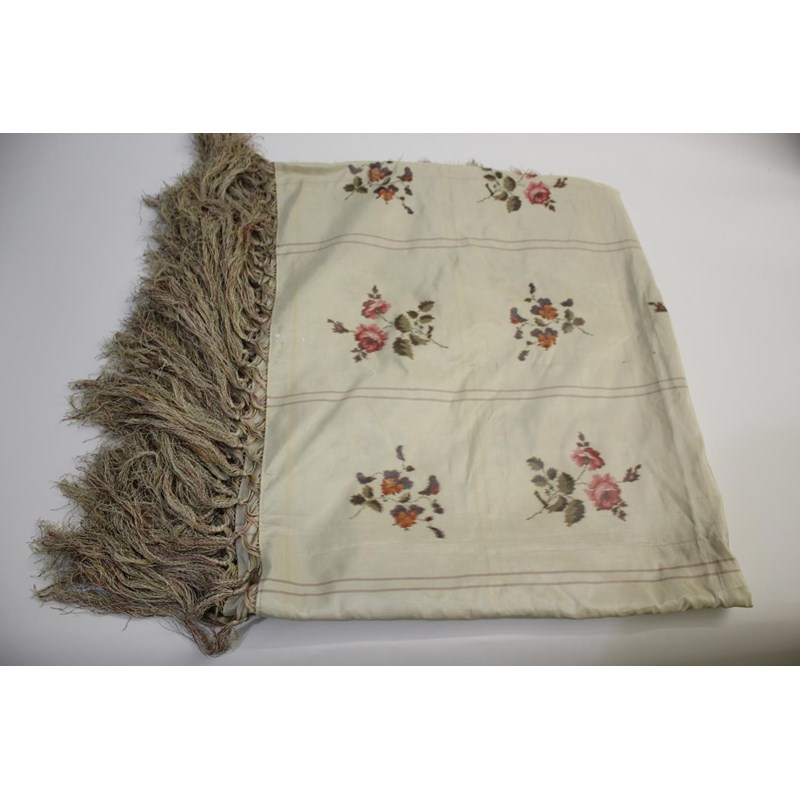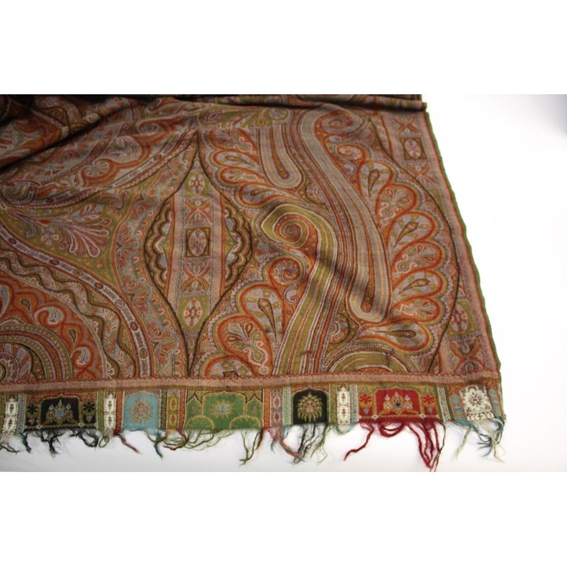 a 19thc paisley wool shawl (160cms by 220cms), also with a circular patchwork throw and a cream fringed silk shawl (165cms by 170cms). (3)