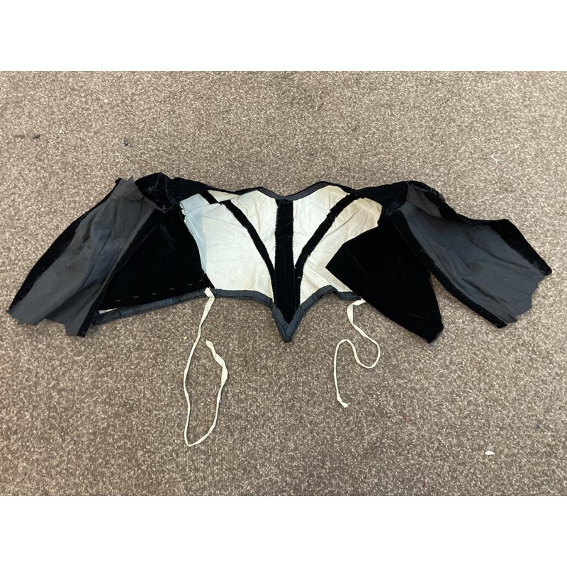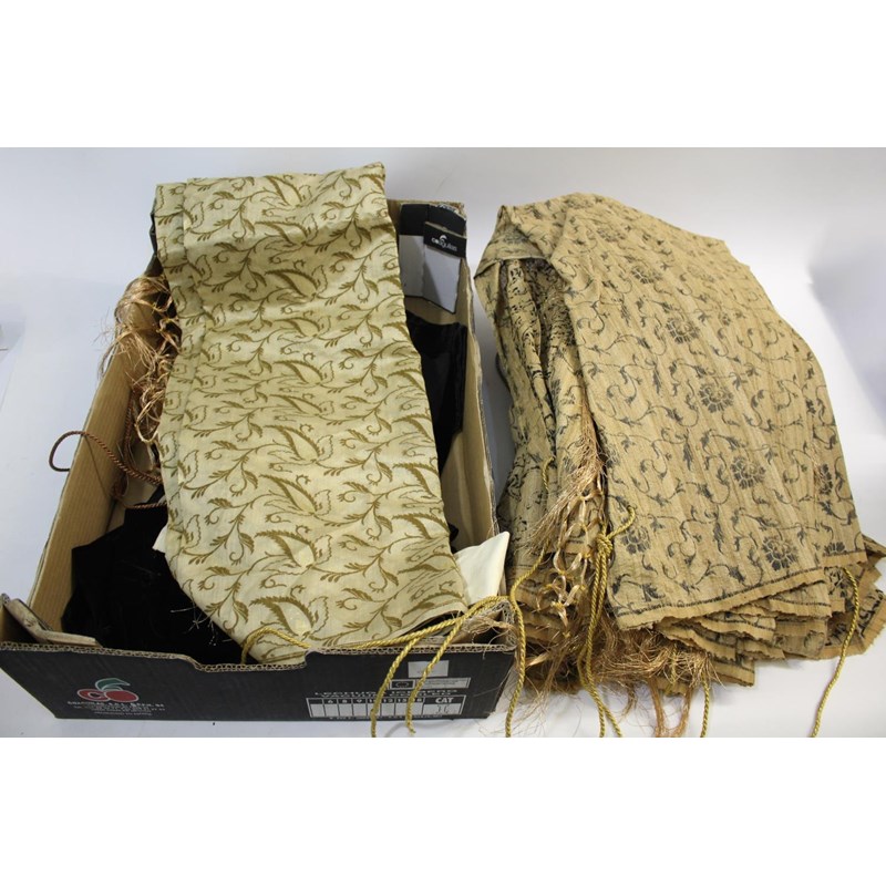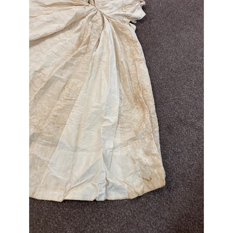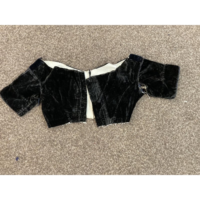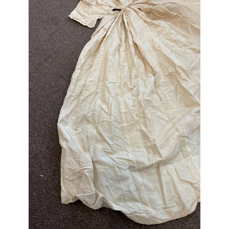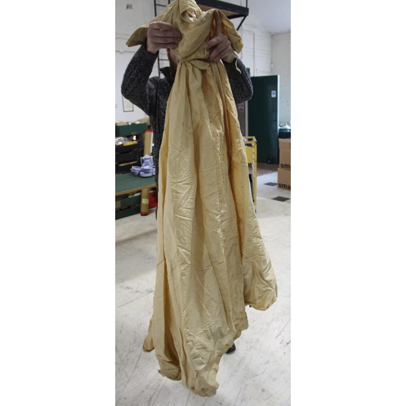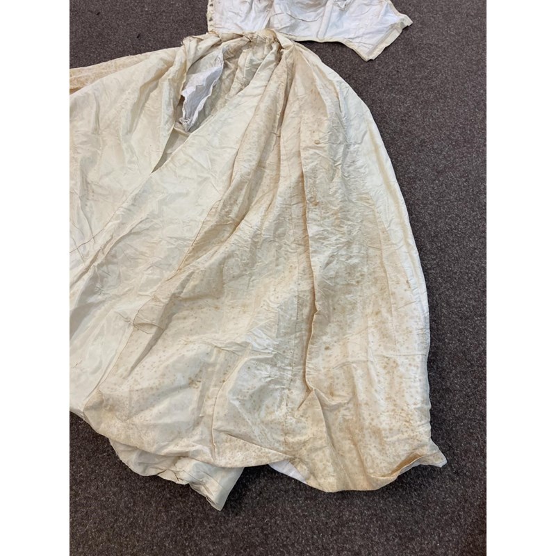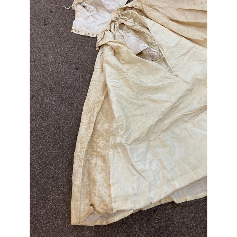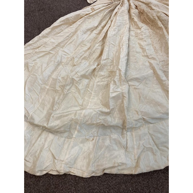 19THC SILK DRESS & TEXTILES a 19thc yellow silk dress, also with a black silk velvet bodice, and a qty of woven black and beige textiles.