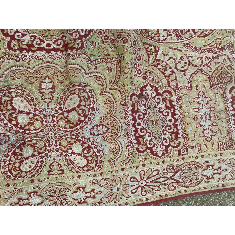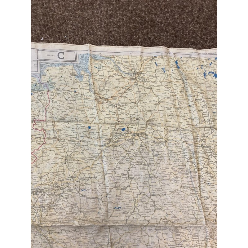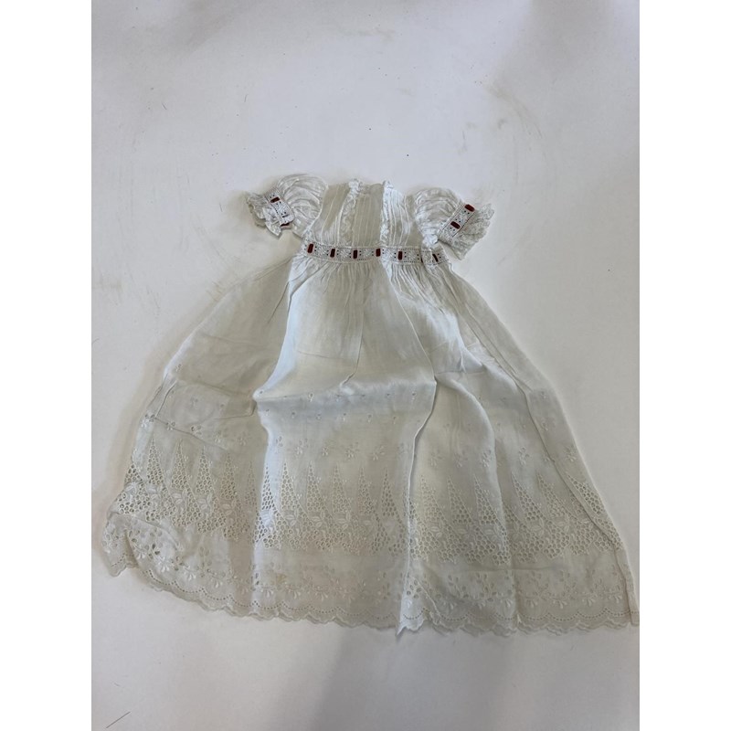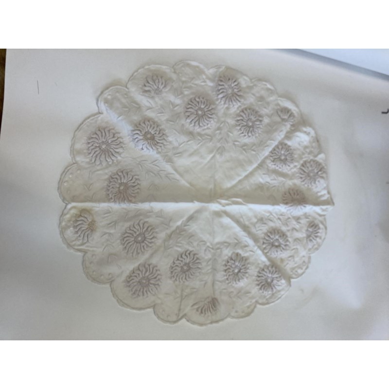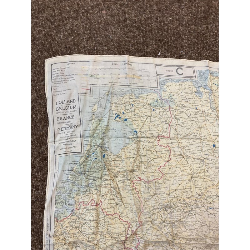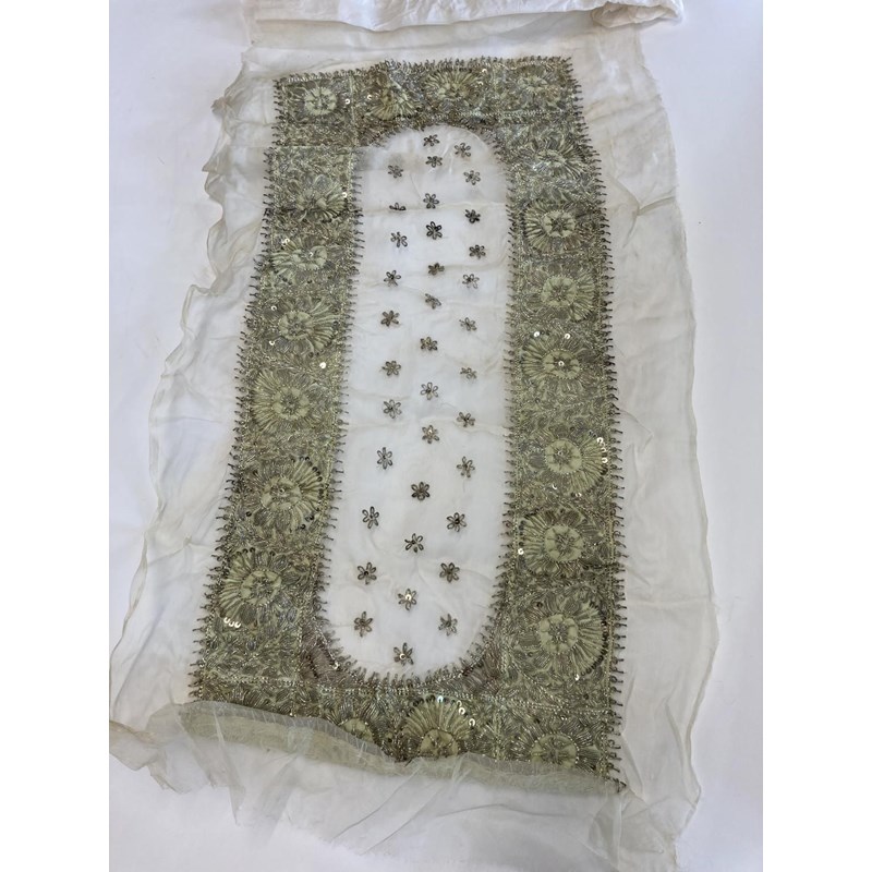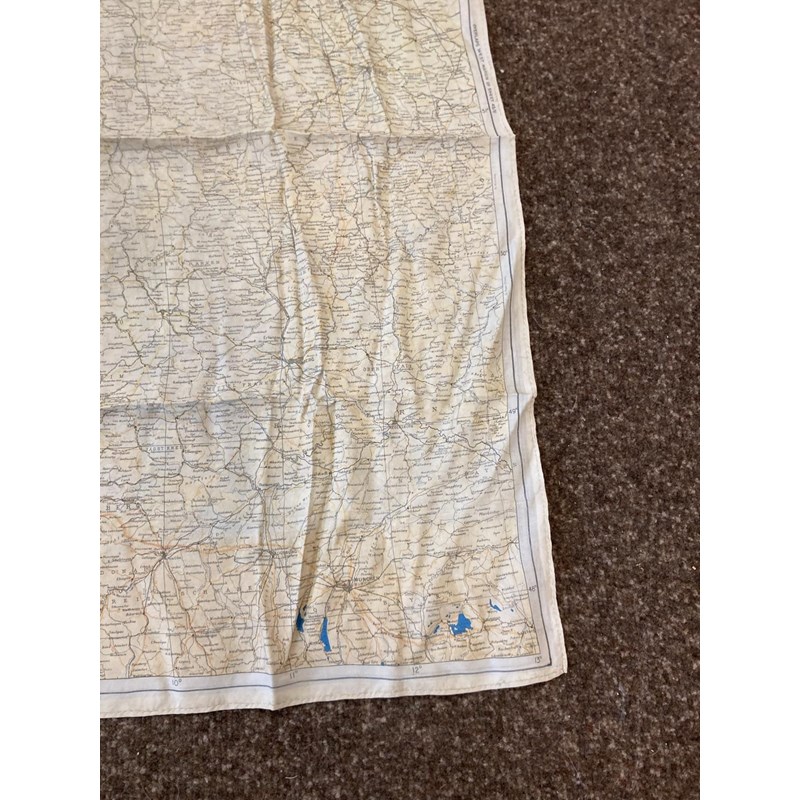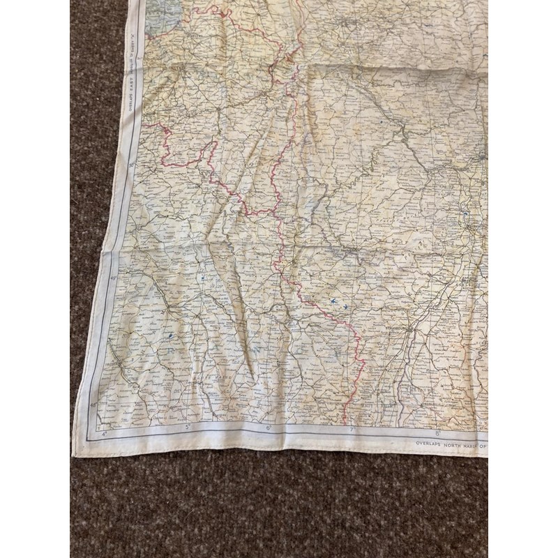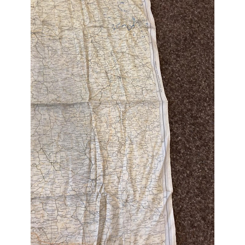 a mixed lot including a woven wool paisley shawl, a WWII silk escape map, an unfinished crewelwork bag, a cream silk velvet with applique decoration, a 1920's lace dress, and a qty of lace, dolls clothes and similar textiles.