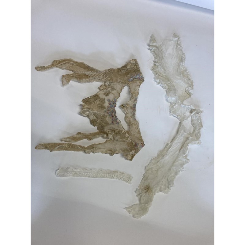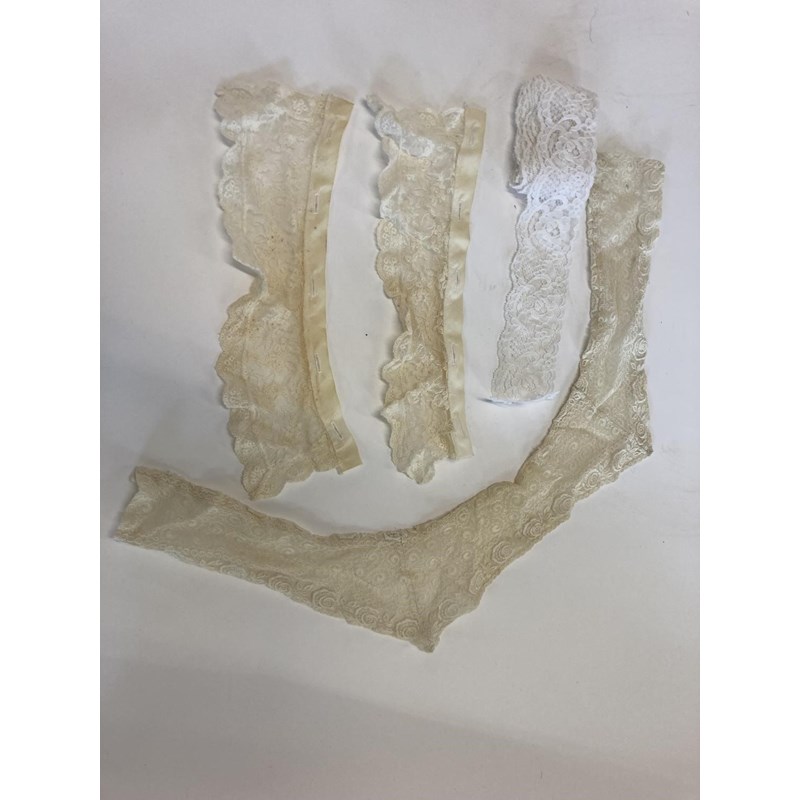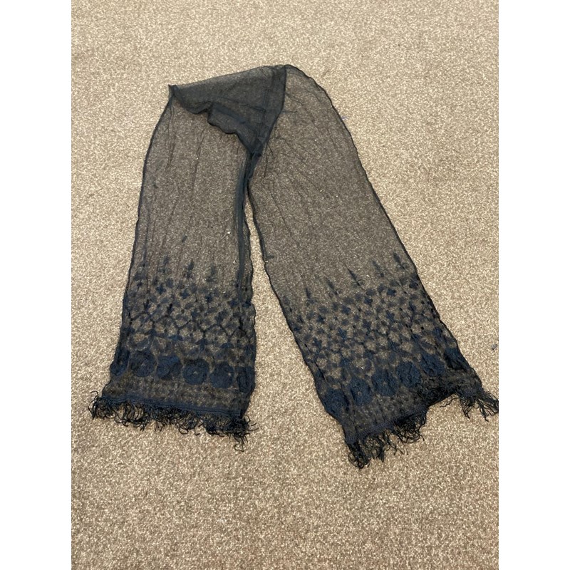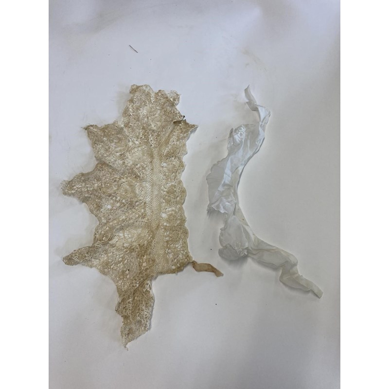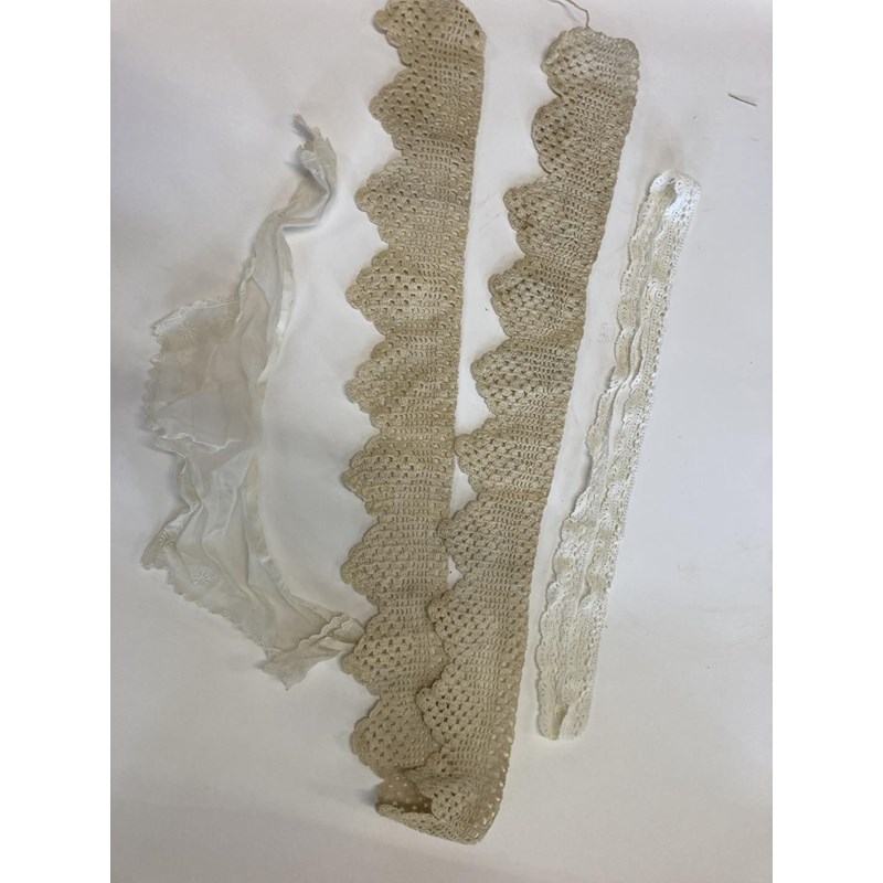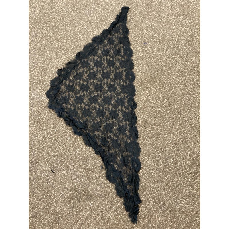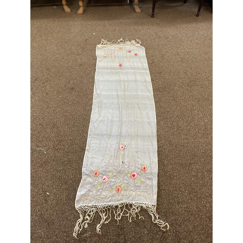 SILK SHAWL & TEXTILES a fine silk shawl embellished with ribbon design flowers, a black lace shawl, and a qty of net and lace edgings and off cuts.