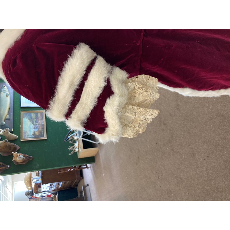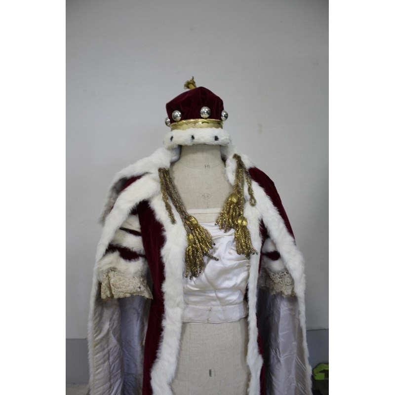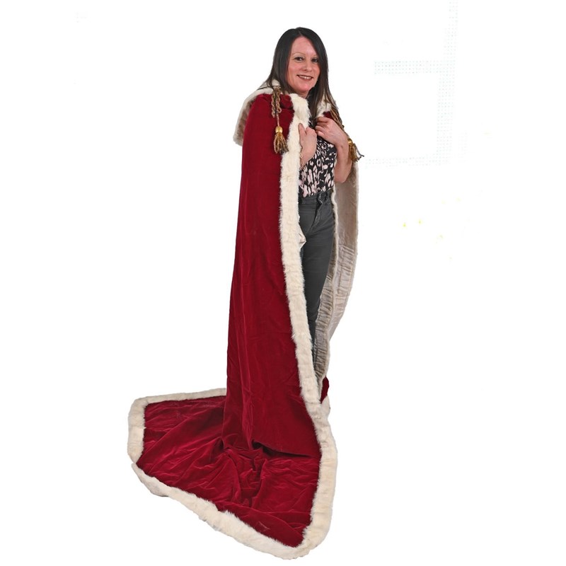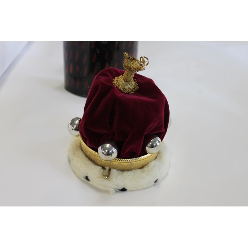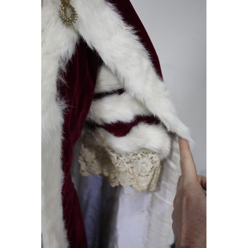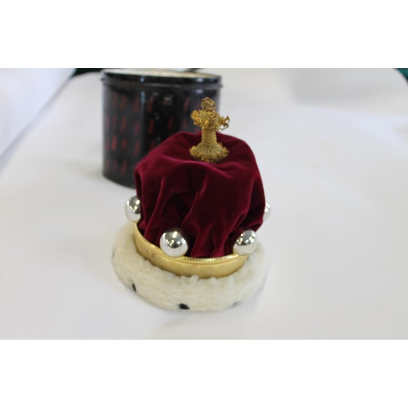 a wonderful set of George VI Coronation robes worn by Lady Baroness Headley, comprising a crimson silk velvet cloak trimmed with ermine, an ivory silk dress, a full length close fitting velvet robe with short fitted sleeves trimmed with lace. Also with a coronet within a silk lined Garrard & Co tin case. Also with a set of House of Lords robes, with scarlet wool trimmed with bands of purple silk velvet belonging to Baron Headley.