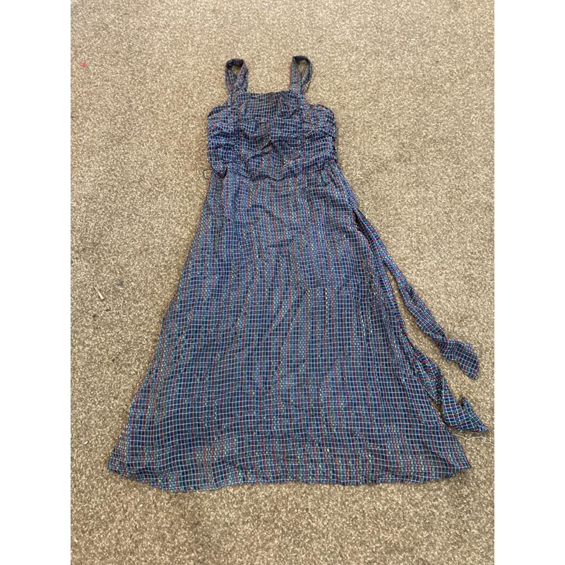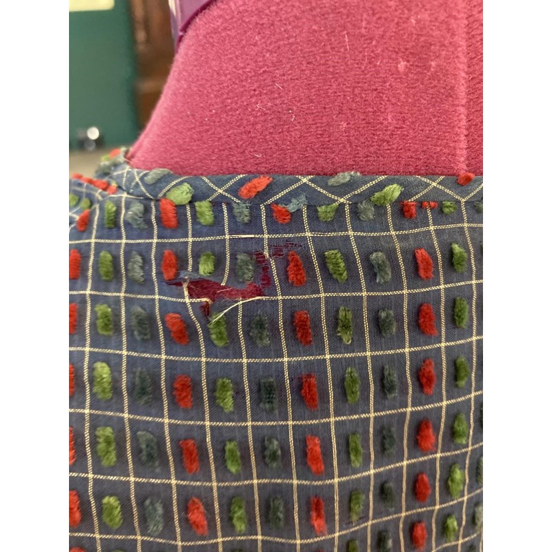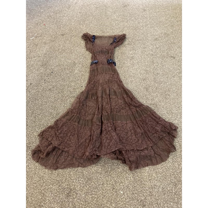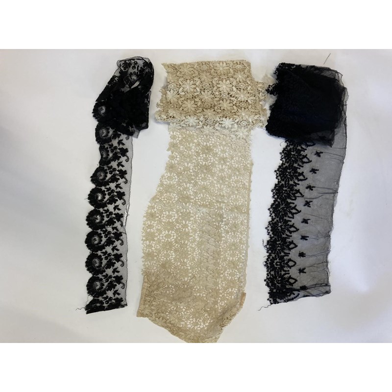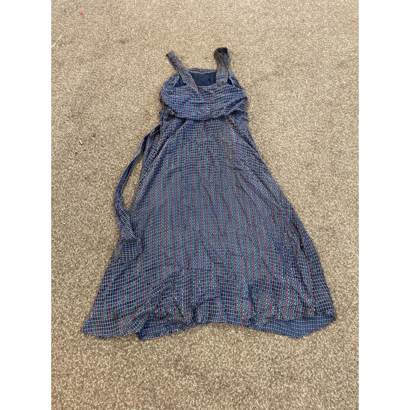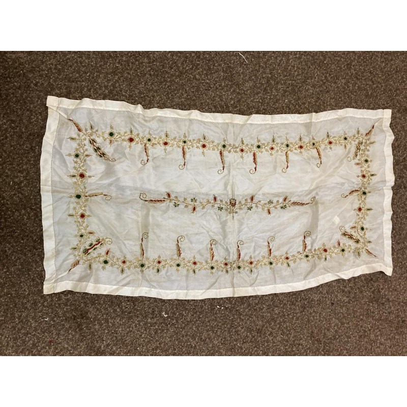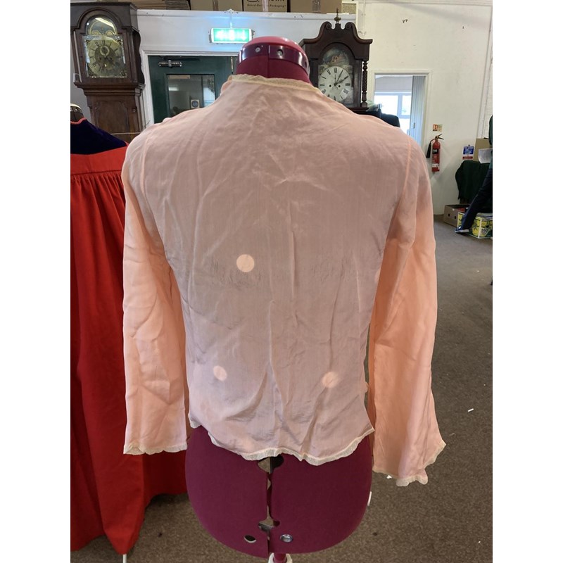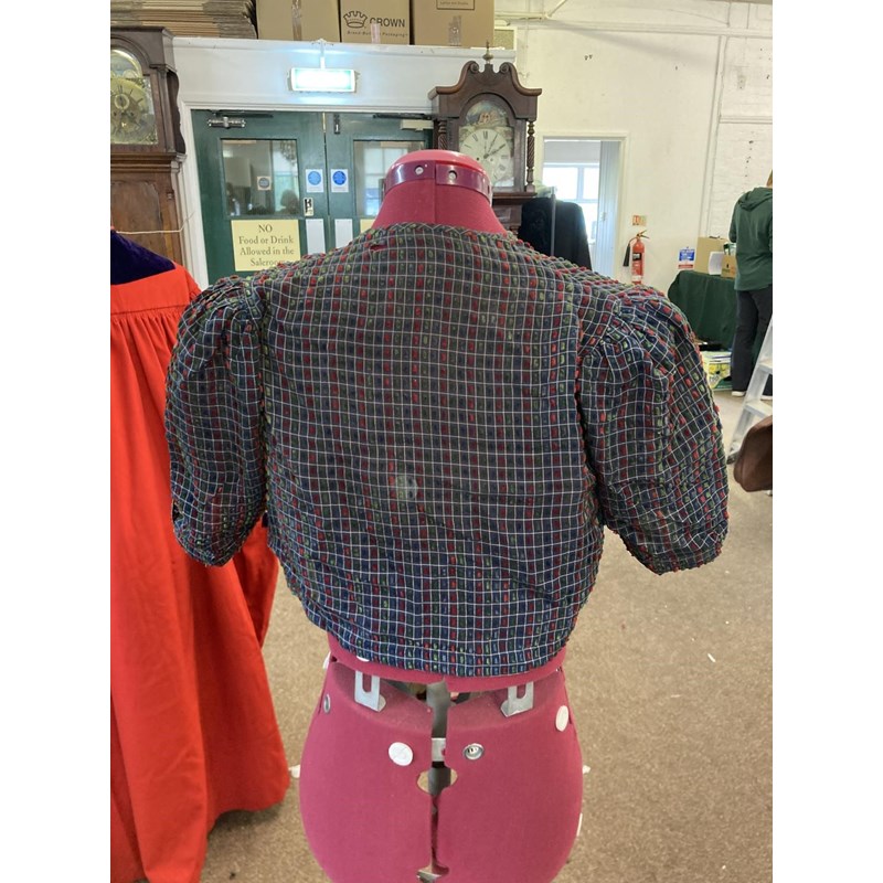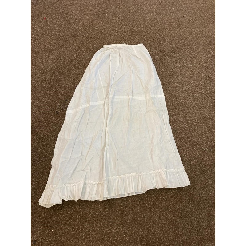 including a 1930's striped dress (119cms high), a navy blue cocktail dress and matching jacket with devore detail, a full length satin slip, a white fur evening cape and textiles.