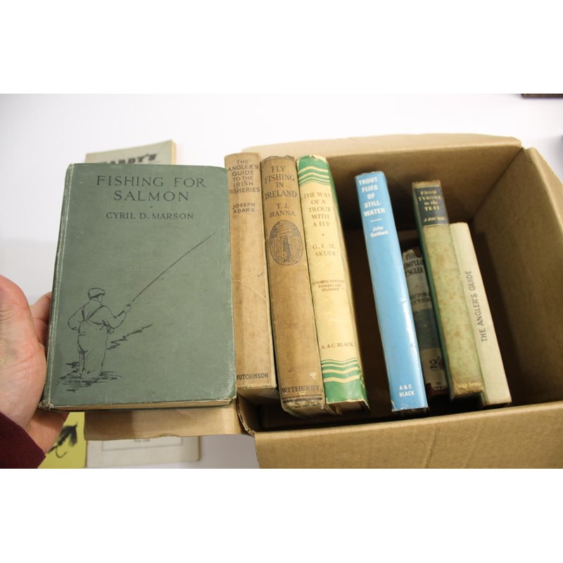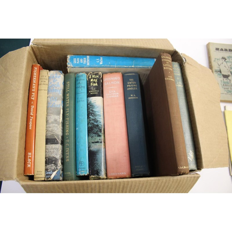 a mixed lot including a Hardy Anglers Guide and Catalogue 1957, and various books including Still Water Fly Fishing by T C Ivens (1952 x 2), The Enterprising Angler by W A Adamson (1950), Spinning Salmon by Balfour Kinnear (1938), An Anglers Entomology by J R Harris (1952), Salmon Fishing in Little Rivers by Ian Chalmers (1938), The Anglers Guide (Dublin), Fishing for Salmon by Cyril D Marson (1929), From Tyrone to the Test by J Dickie, Fly Fishing in Ireland by T J Hanna (1933) and other books.
