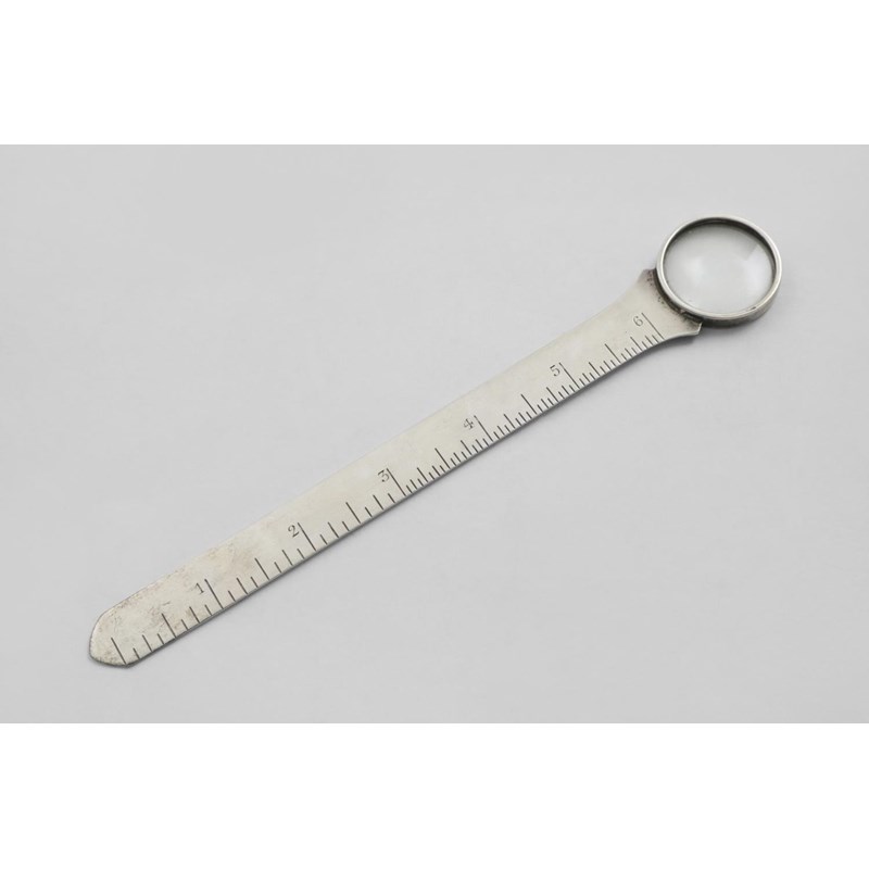 A GEORGE V COMBINED 6-INCH RULE, PAPER KNIFE AND MAGNIFYING GLASS by Asprey & Co.Ltd., Birmingham 1923; 7.75" (19.7 cms) long; 1.3 oz