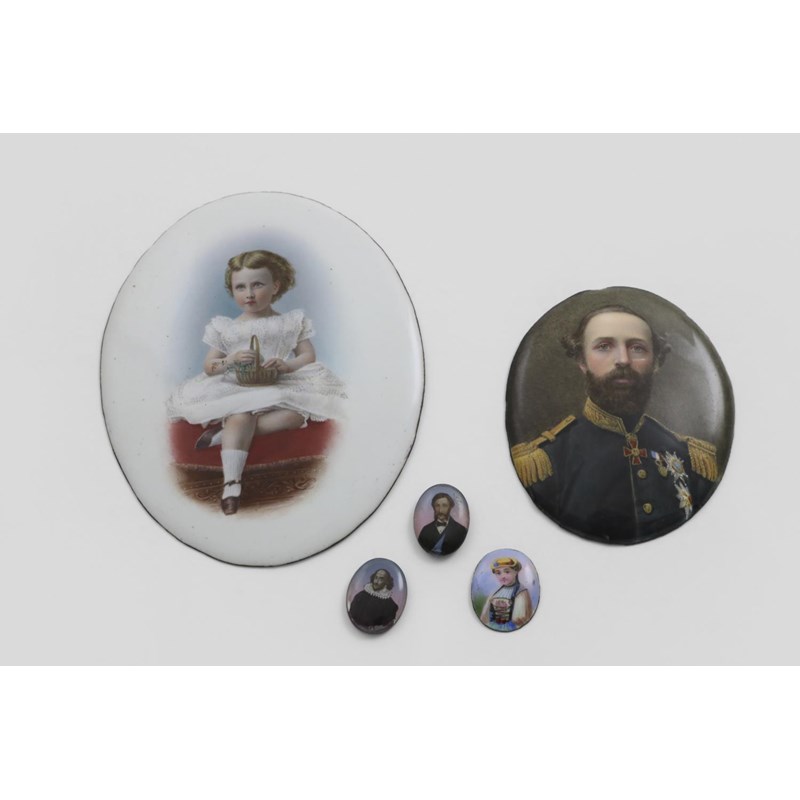 of a young girl, by Lee & Co. of Cardiff c.1900, another smaller regimental portrait of an officer, also by Lee & Co. and three other small items; the larger portrait 3.5" (9 cms) high (5)