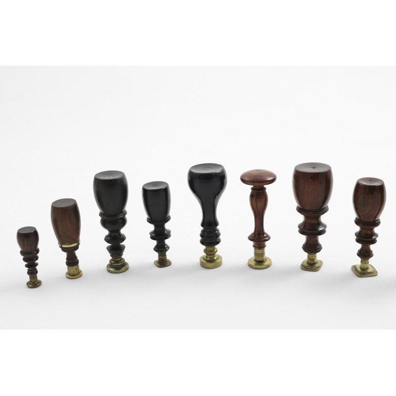 with handles and brass matrixes (some with initials/coats of arms, etc. intaglio); the largest one 3.75" (9.4 cms) long (9)