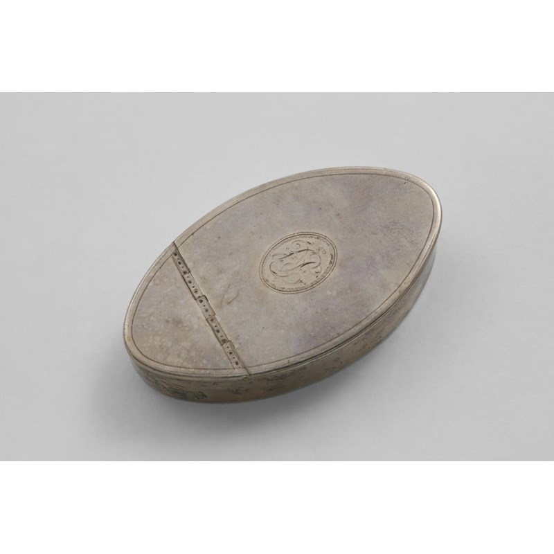 with a concealed hinge, and engraved borders, the corner with an oval cartouche, initialled, gilt interior, by t. Phipps & E. Robinson, London 1794; 3.5" (9 cms) long; 2.5 oz