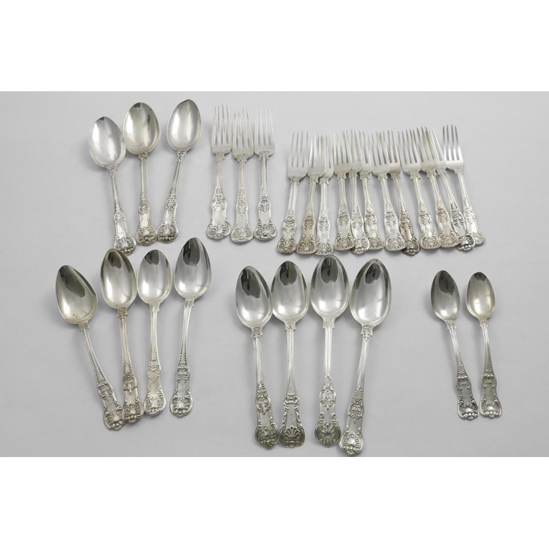 AN ASSEMBLAGE OF ANTIQUE QUEEN'S PATTERN FLATWARE