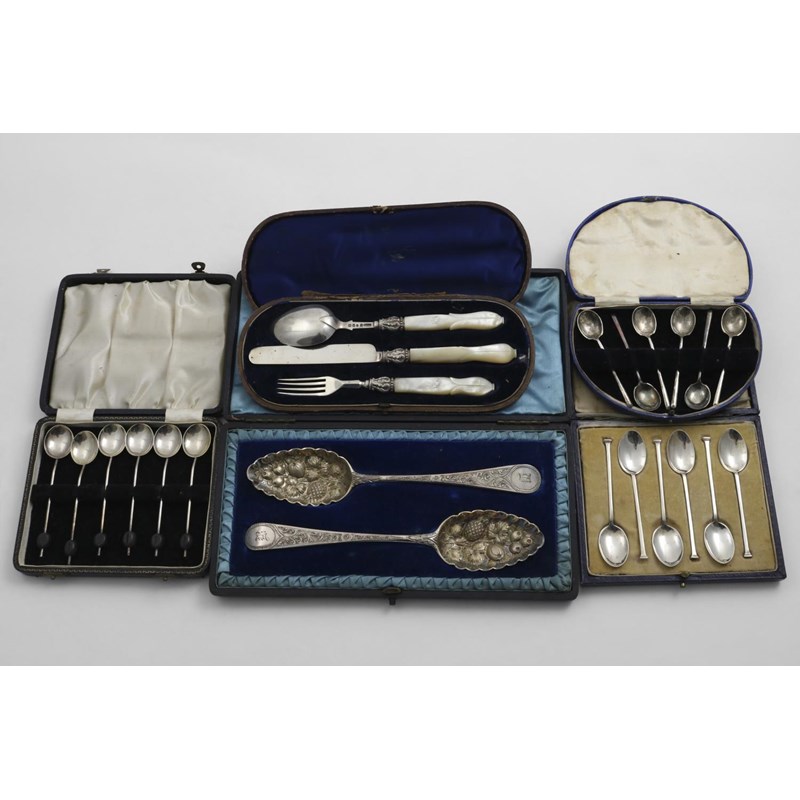 THREE VARIOUS CASED SETS OF SIX COFFEE SPOONS