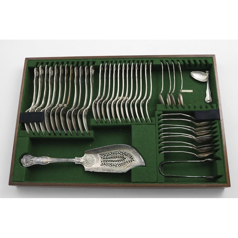AN EARLY VICTORIAN CANTEEN OF KING'S HUSK PATTERN FLATWARE