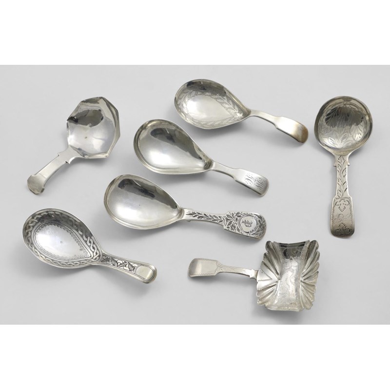 SEVEN VARIOUS ANTIQUE BIRMINGHAM-MADE CADDY SPOONS