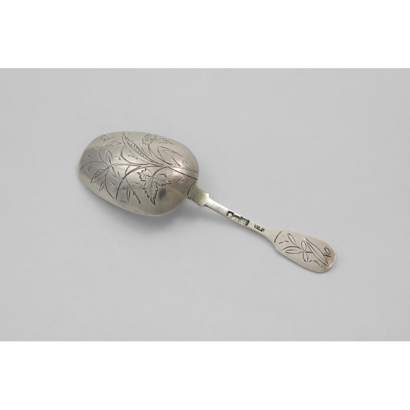 with engraved foliage on the stem and back of the bowl, by Stepan Levin, Moscow 1896; 4" (10 cms) long; 0.55 oz