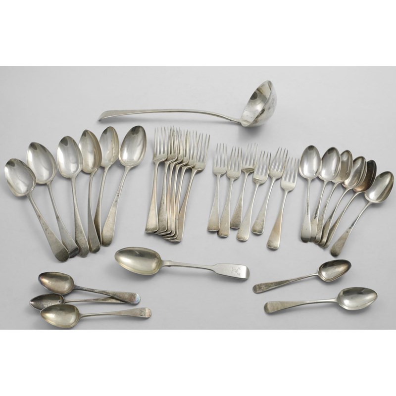 by William Eley & William Fearn, London 1804, some pieces with initials and a Fiddle pattern dessert spoon, crested; 40 oz (31)
