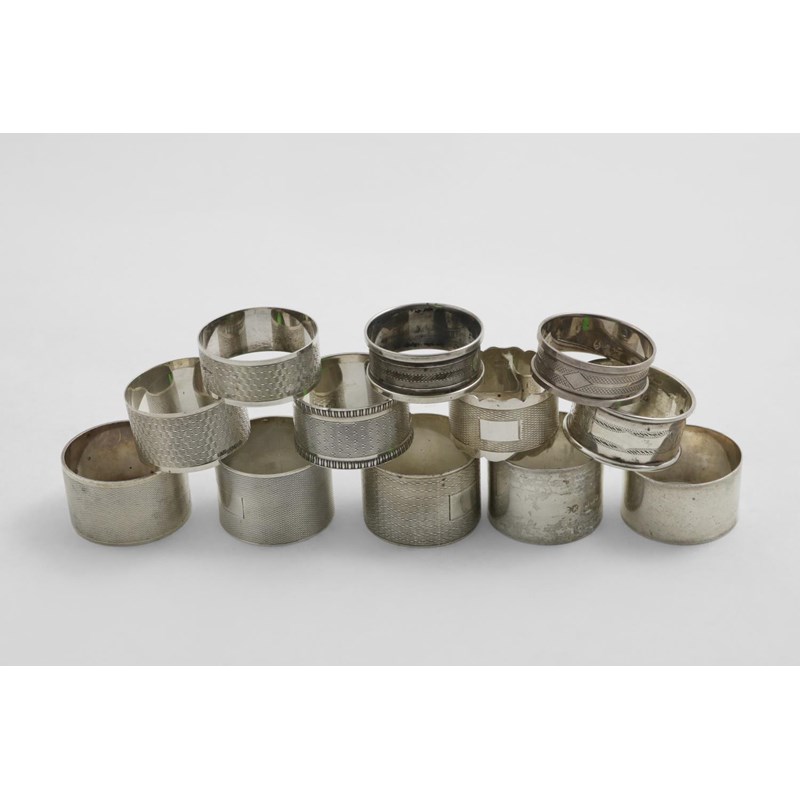 TWELVE VARIOUS NAPKIN RINGS all without initials or dedications, mixed dates & makers, Edwardian-Elizabeth II period; 11.78 oz (12)