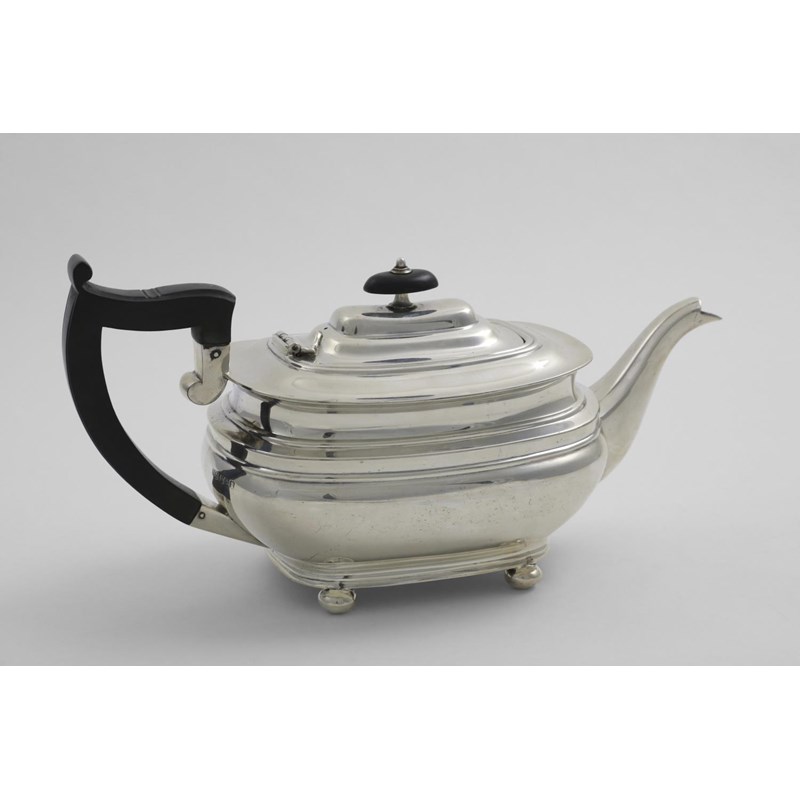 A GEORGE V TEA POT on four bun feet, by Roberts & Belk of Sheffield 1919; 5.75" (14.5 cms) high; 20.5 oz