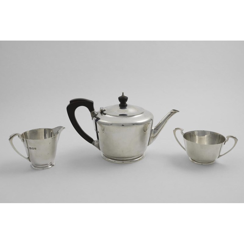 with plain circular slightly tapering bodies, by Edward Barnard & Sons Ltd., London 1940; the tea pot 5.1" (13 cms) high; 24.9 oz (3)