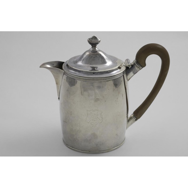 oval with reeded borders, a domed cover and an urn-shaped finial, crested, by Peter & Anne Bateman, London 1796; 8.1" (20.7 cms) high; 20.35 oz