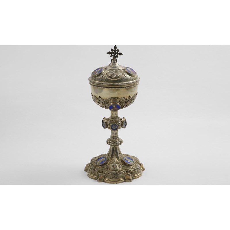 A LATE 19TH CENTURY FRENCH SILVERGILT AND ENAMEL CIBORIUM