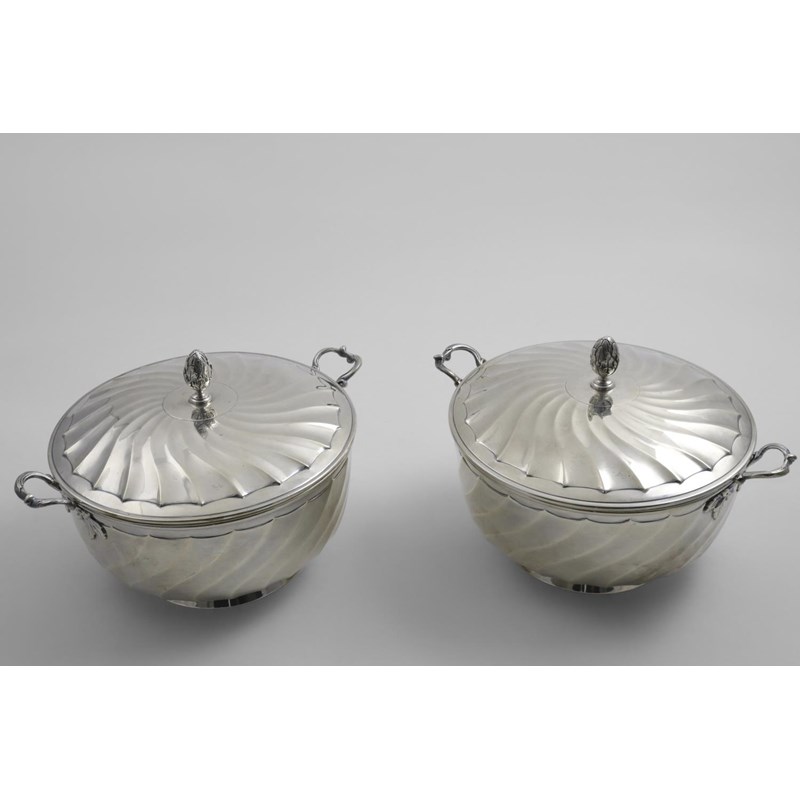 A PAIR OF GEORGE V CIRCULAR VEGETABLE DISHES AND COVERS