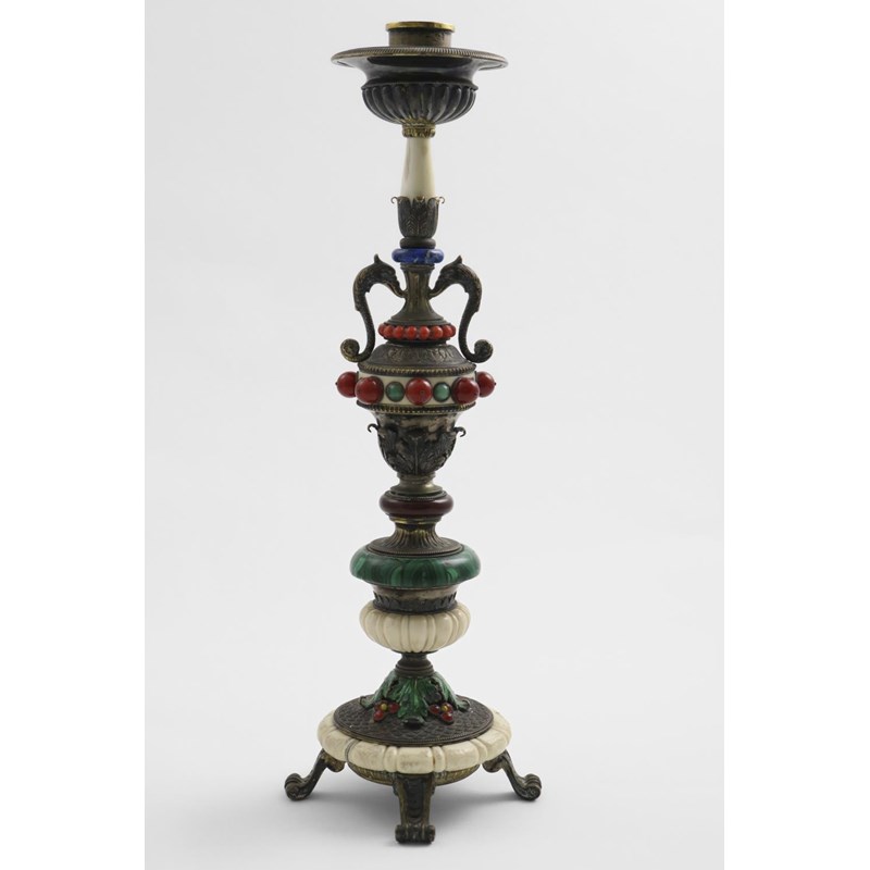 A LATE 19TH CENTURY ITALIAN SILVERGILT MOUNTED DECORATIVE CANDLESTICK