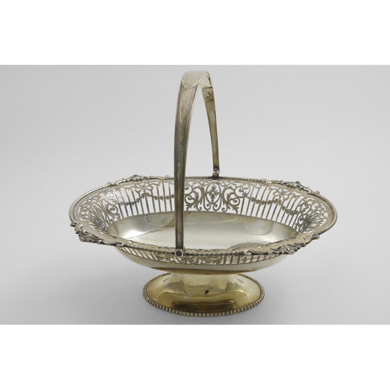 A GEORGE V SWING-HANDLED OVAL CAKE BASKET
