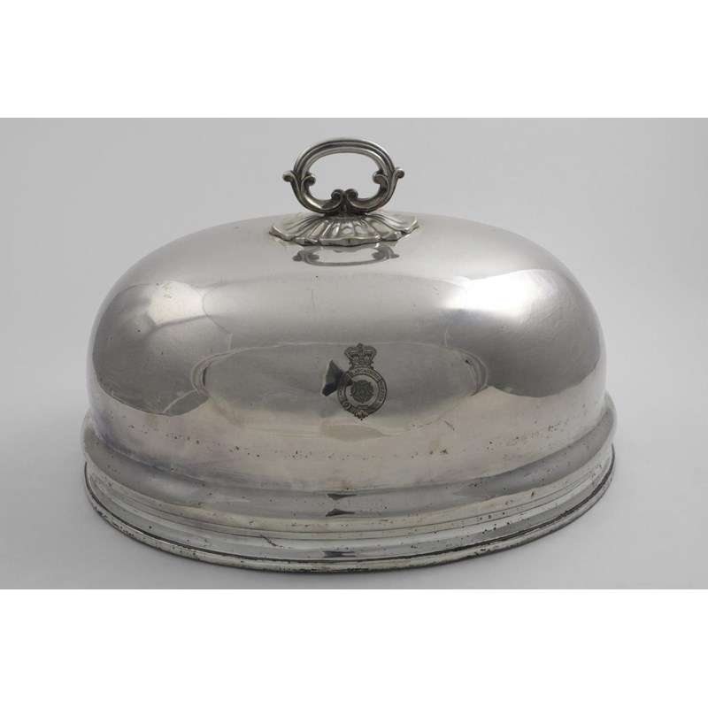 engraved on each side with the badge of the 96th Regiment of Foot (later electroplated handles), and a Victorian electroplated meat dish cover engraved with the badge of the "Royal Lancashire Militia"; the latter 20" (51 cms) long (3)