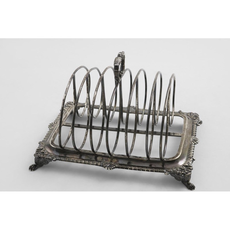 with arched wire bars, a central handle and a decorative border of gadrooning and shells, & resting on four paw feet, crested, by Thomas Robins, London 1812; 8.5" (21.5 cms) long; 19.75 oz