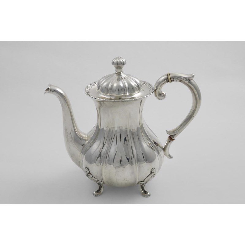 of baluster form with fluting, four legs and a domed cover with a knop finial, Hugo Grun & Co., Copenhagen 1941; 9" (23 cms) high; 24.2 oz