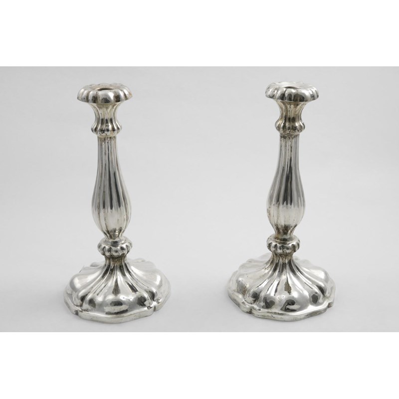 with fluted decoration, baluster columns and domed, shaped circular bases, maker's mark "TB", Vienna 1860/61; 11.2" (28.5 cms) high; 16.5 oz (2)