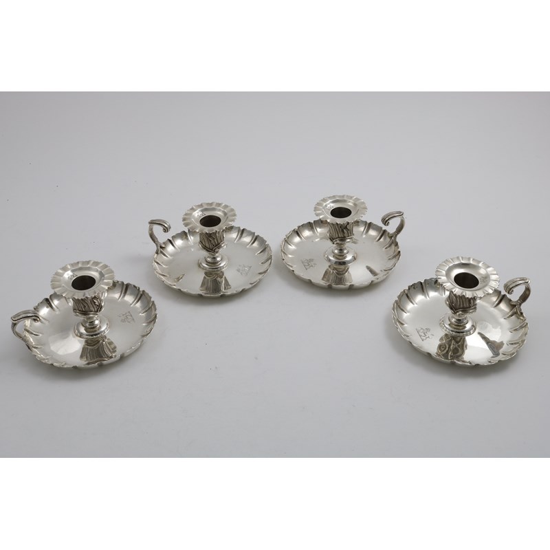 A SET OF FOUR WILLIAM IV CHAMBERSTICKS