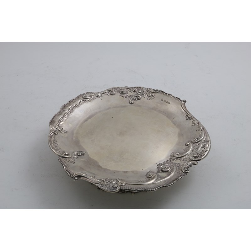 with embossed decoration around the rim and foot, and a registered design no., by R. Martin & E. Hall, Sheffield 1897; 9.5" (24 cms) diameter; 15 oz