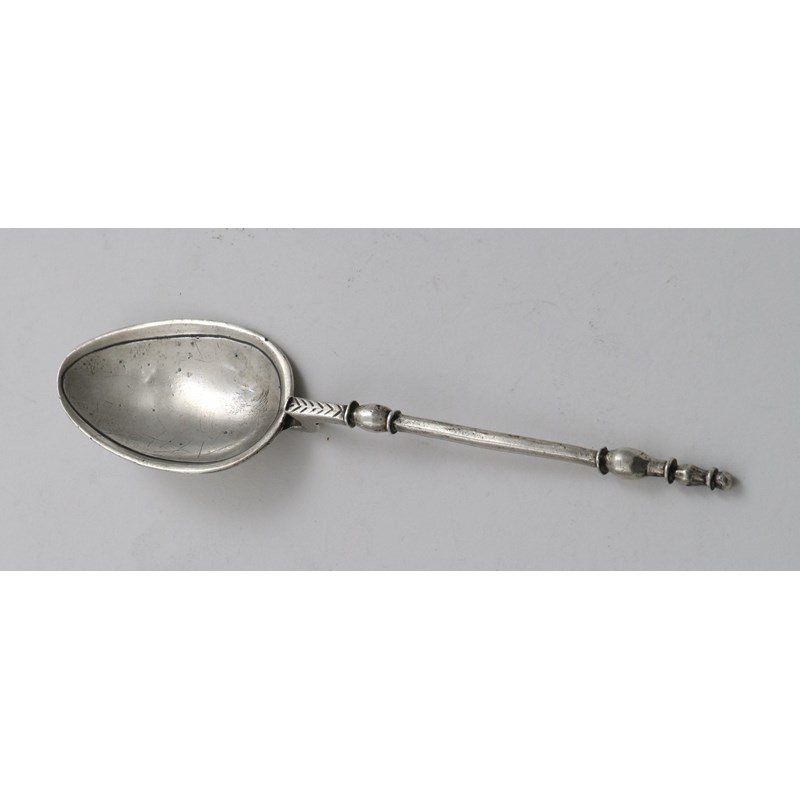 The off-set egg shaped bowl with an incised border and engraved chevrons at the junction, the hexagonal stem with a turned section at each end, unmarked, probably dating from the fourth century AD; 6.4" (16.2 cms); 0.9 oz