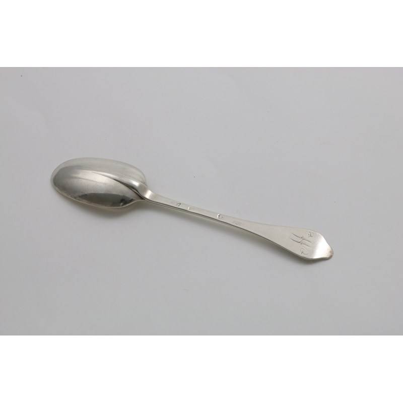 with a plain moulded rattail and the initial "W" on the back of the terminal, maker's mark "RA", London 1705; 6.75" (17.2 cms) long; 1.25 oz