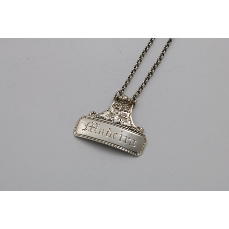 of canted rectangular form with a rising volute surmount, decorated in relief with fruiting vines and an anthemian motif, incised "Madeira", by Robert Gray & Sons (of Glasgow), with Edinburgh hallmarks for 1818; 2" (5 cms) long; 0.65 oz