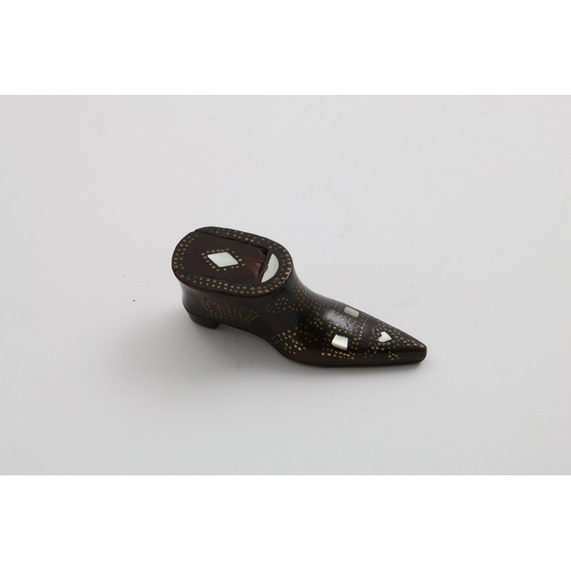 A SMALL VICTORIAN MAHOGANY SHOE SNUFF BOX